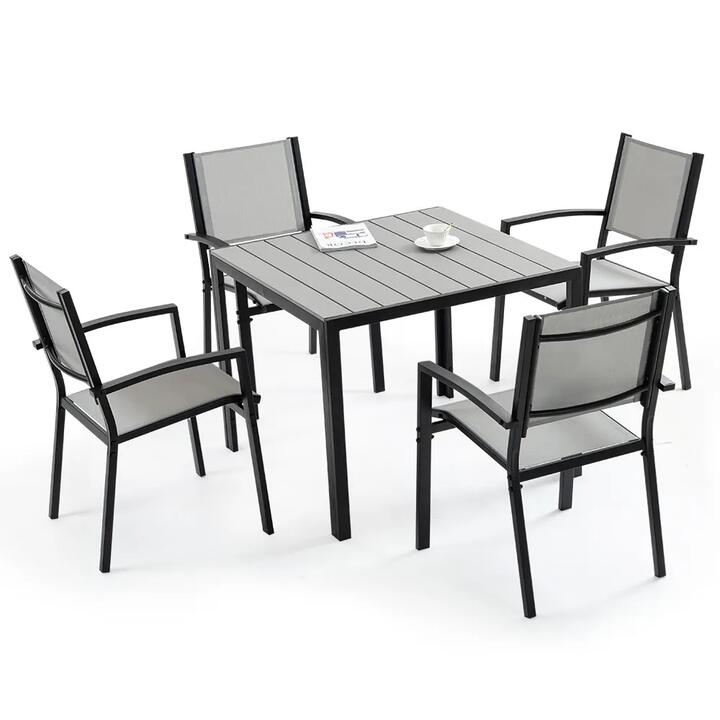 FORTIA 5pc Outdoor Dining Furniture Set, 90 x 90cm Table and Chairs Setting for Outside