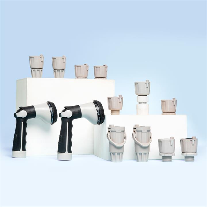 Water Wise Starter Kit x2 – use this popular kit to convent your current garden hose over to the Hoselink no-burst system at both the tap and sprayer ends. Includes a Universal Tap Connector, Hose End Connector, a Hose Connector with Flow Control, an Accessory Connector with Swivel and a Spray Gun.