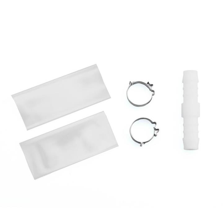The kit includes 1x Plastic Double Ended Barb, 2x Easy Lock Hose Clamps, and 2x Pieces of Heat Sealing Shrink Wrap and an Instruction Sheet. The whole process takes about 15 minutes and is easy enough for anyone to complete.